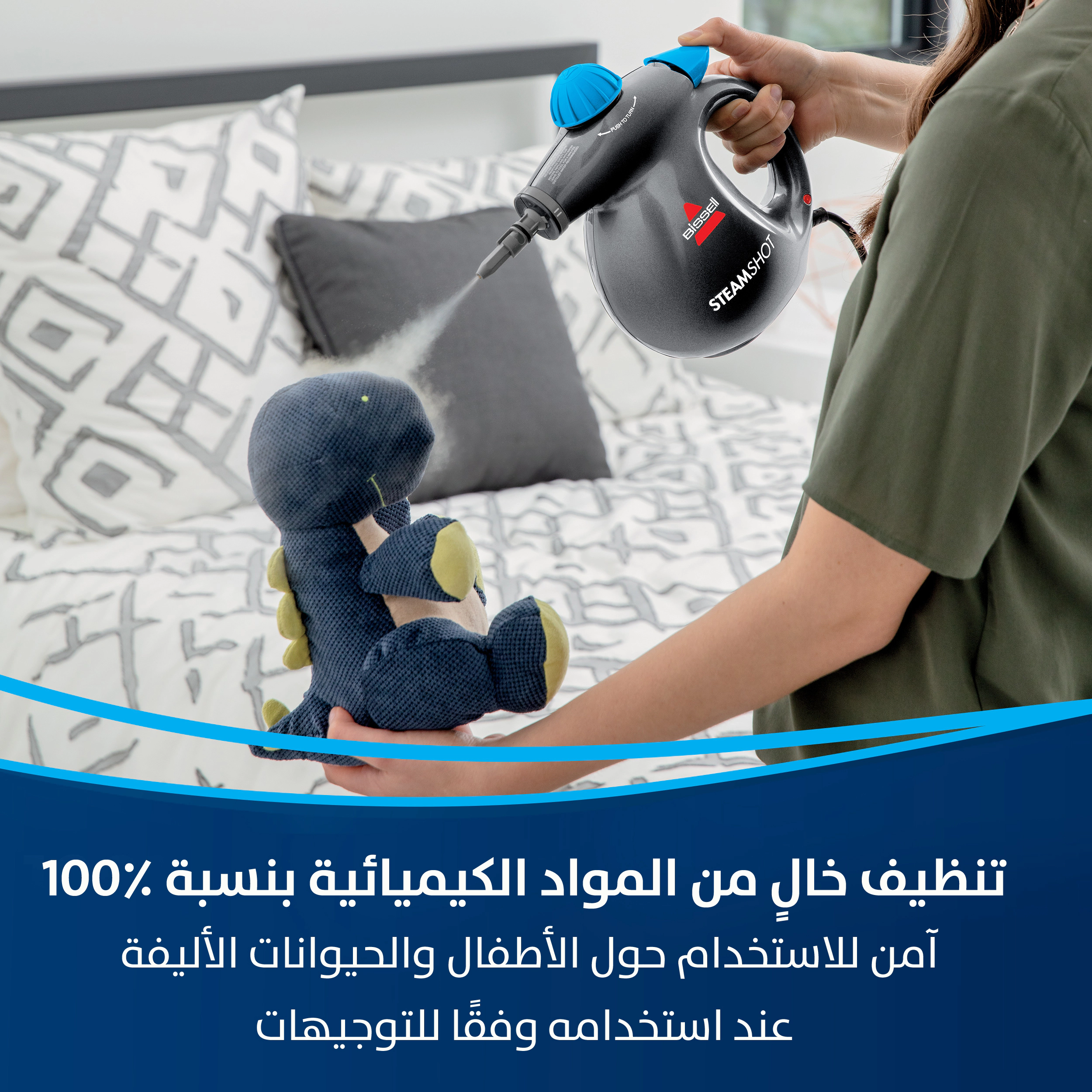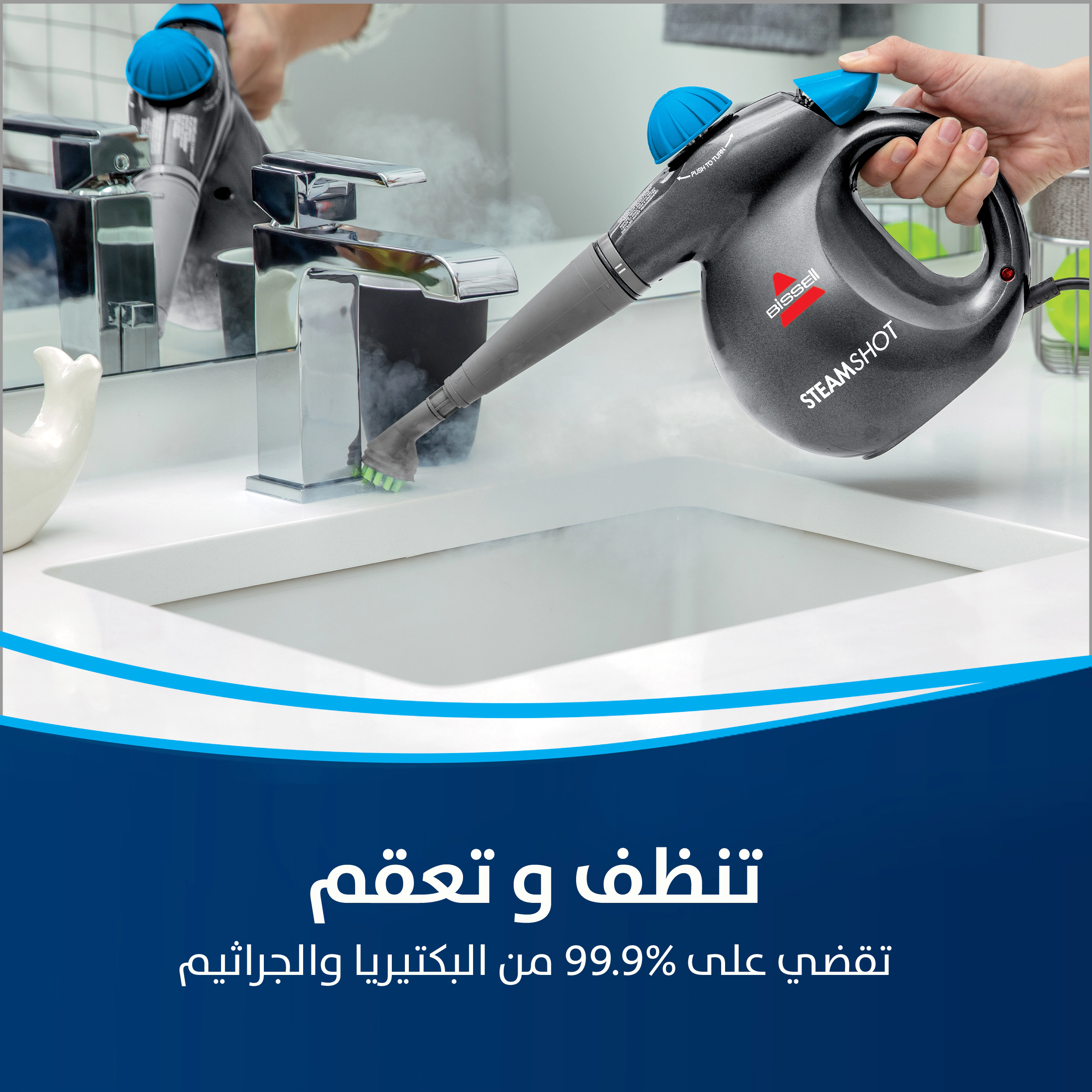 استفد من قوة البخار الطبيعية في تنظيف وتعقيم مجموعة متنوعة من الأسطح الصلبة في منزلك باستخدام منظف البخار المحمول باليد ستيم شوت من بيسل . يقضي جهاز التنظيف بالبخار ستيم شوت خفيف الوزن على 99.9٪ من الجراثيم والبكتيريا * التي تتواجد على الأسطح الصلبة في منزلك. تأتي مع سبع أدوات ملحقة للتنظيف ، لذا فهي تعمل على أبواب الدش ، والجبس ، والأفران ، وأفران الميكروويف ، وغير ذلك الكثير. يساعد زر التشغيل السريع على التحكم في كمية البخار المندفع أثناء التنظيف. يستخدم جهاز ستيم شوت الماء فقط للتنظيف ، مما يمنحك تنظيفًا خالٍ من المواد الكيميائية بنسبة 100٪ ، لذا فهو آمن للاستخدام حول الأطفال والحيوانات الأليفة عند استخدامه وفقًا للإرشادات.