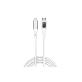 سلك شاحن أوكي , نايلون 100واط , USB-C إلى USB-C مع شاشة LCD أبيض
